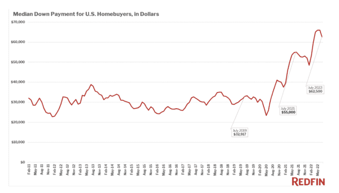 However that quantity has cooled barely since. Redfin additionally mentioned that the everyday U.S. homebuyer who took out a mortgage in July 2022, made a $62,500 down fee.